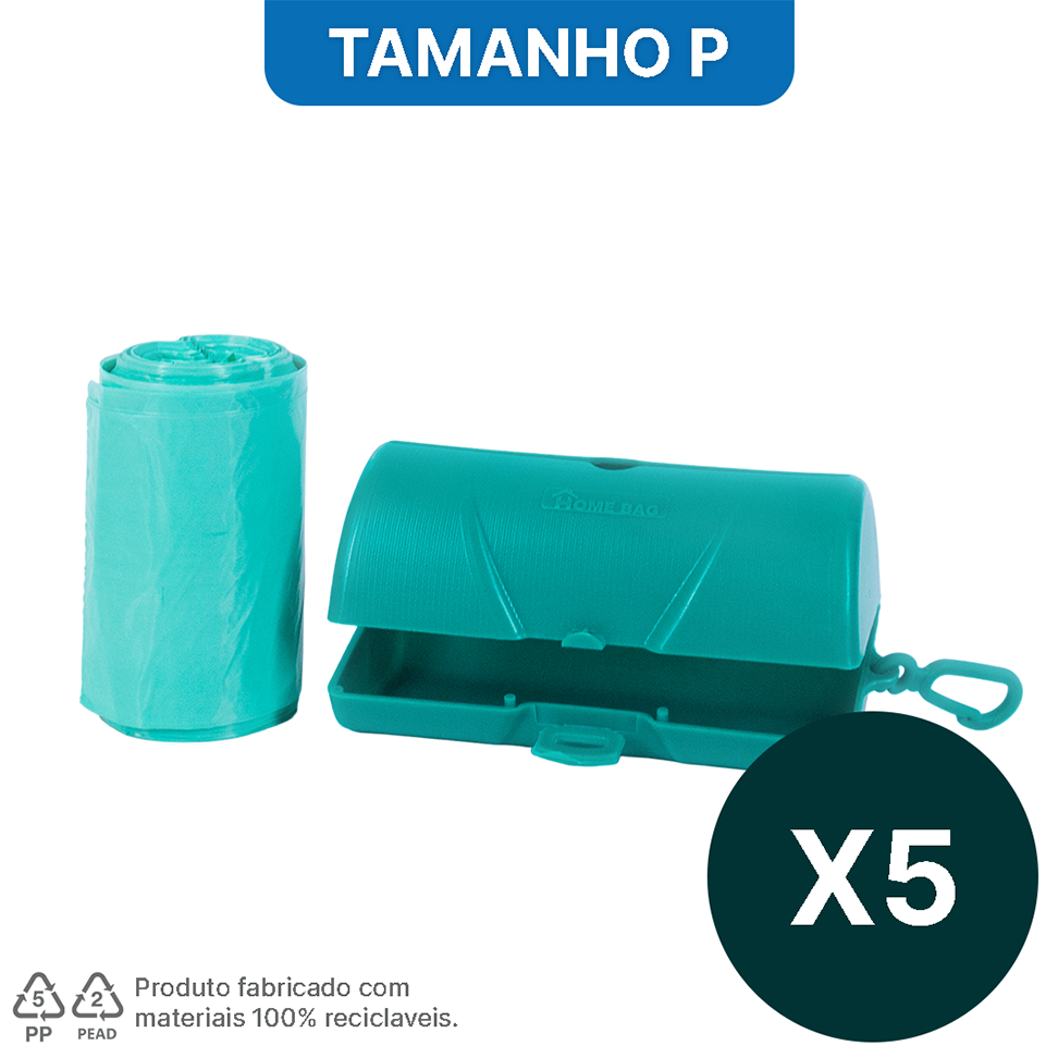 Este kit é composto por 05 rolos contendo 40 saquinhos cada, da linha HomeBag ® Pets.Todos acompanham suporte dispensador tamanho P.