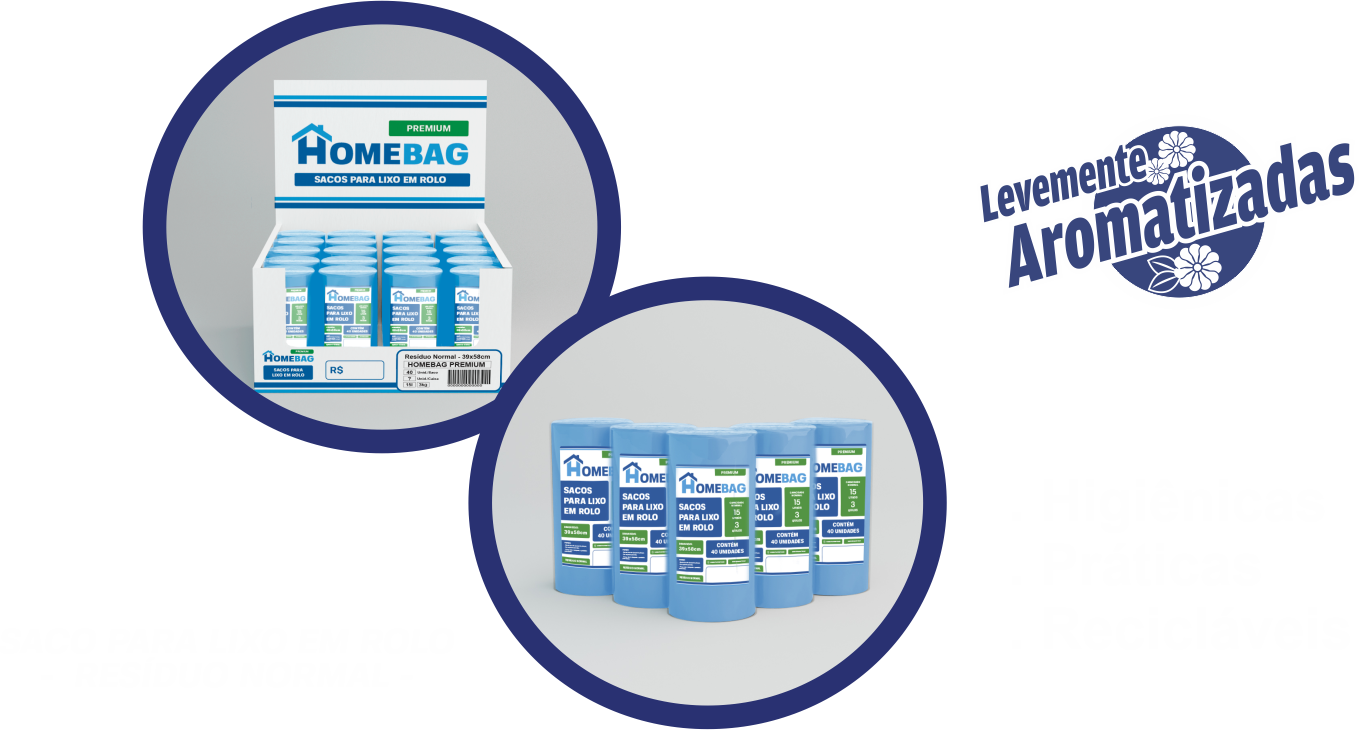 A HomeBag é uma marca brasileira especializada em soluções plásticas para a organização do dia a dia. Nossos principais produtos são os rolos de sacos plásticos (para carros, viagens, academia e uso doméstico) e lixeiras compactas. Com design funcional e materiais de qualidade, a HomeBag oferece praticidade, higiene e facilidade para quem busca manter seus ambientes sempre limpos e ordenados