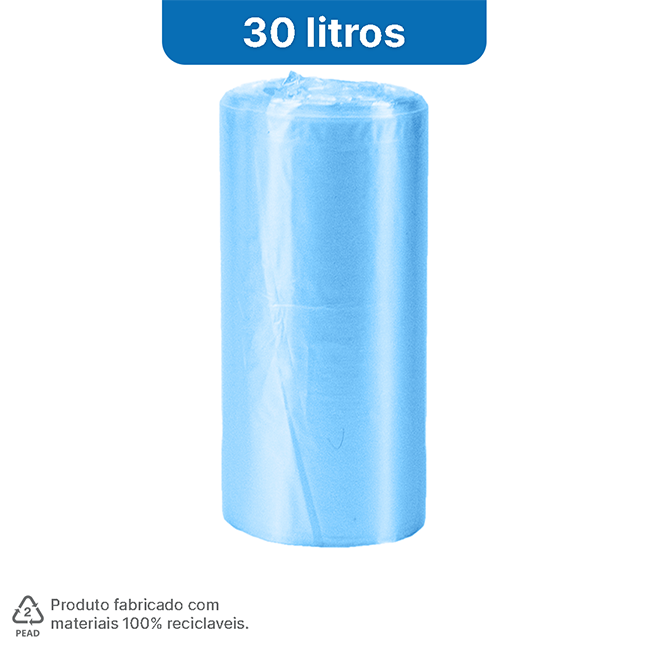Cada rolos contém 20 unidades de saco de lixo da linha HomeBag ® Premium de 30 litros na cor azul.